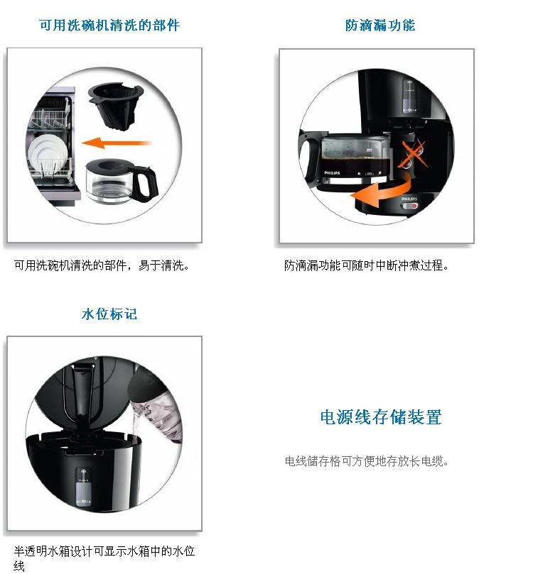 飞利浦咖啡壶 HD7450/20 咖啡机(黑色)