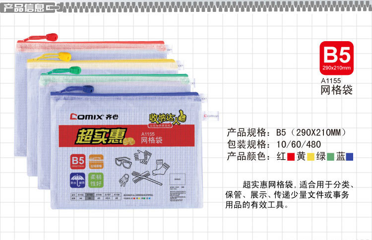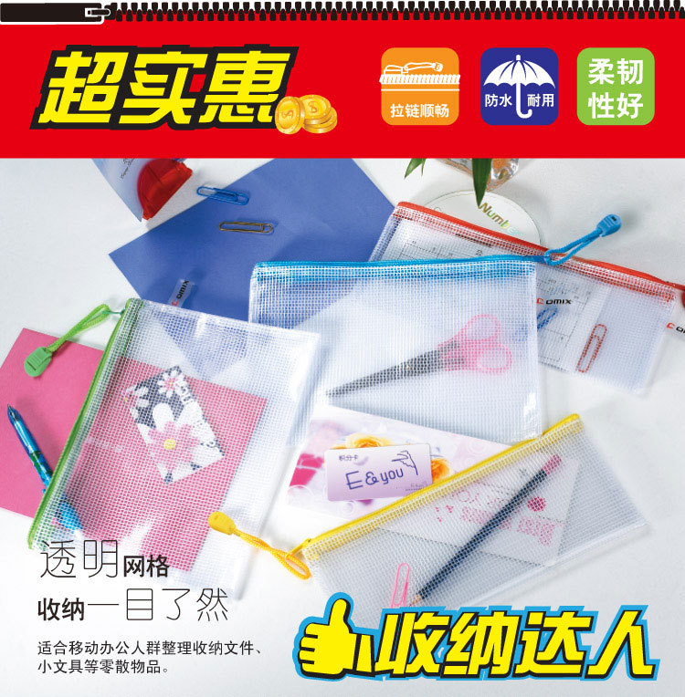 齐心(COMIX)A1154 PVC网格拉链袋/文件袋/资料... ¥3.50/个
