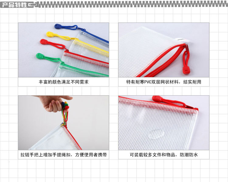 透明网拉链袋 文件袋 资料袋 多色 A4 ¥2.80/个