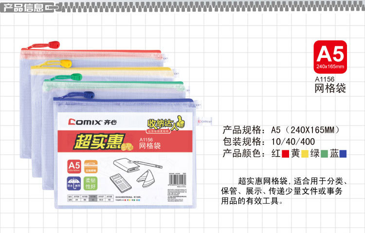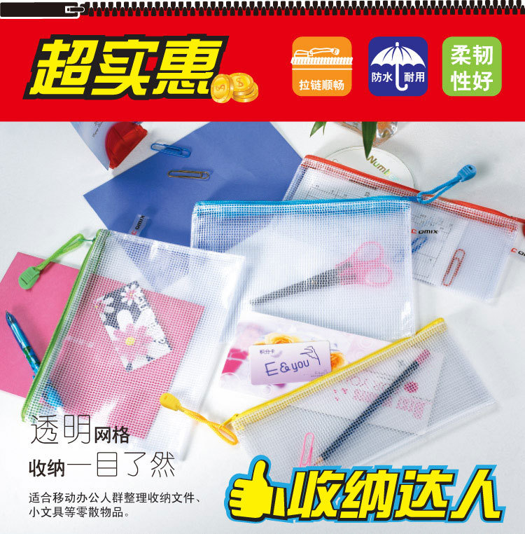 齐心(COMIX)A1154 PVC网格拉链袋/文件袋/资料... ¥3.50/个