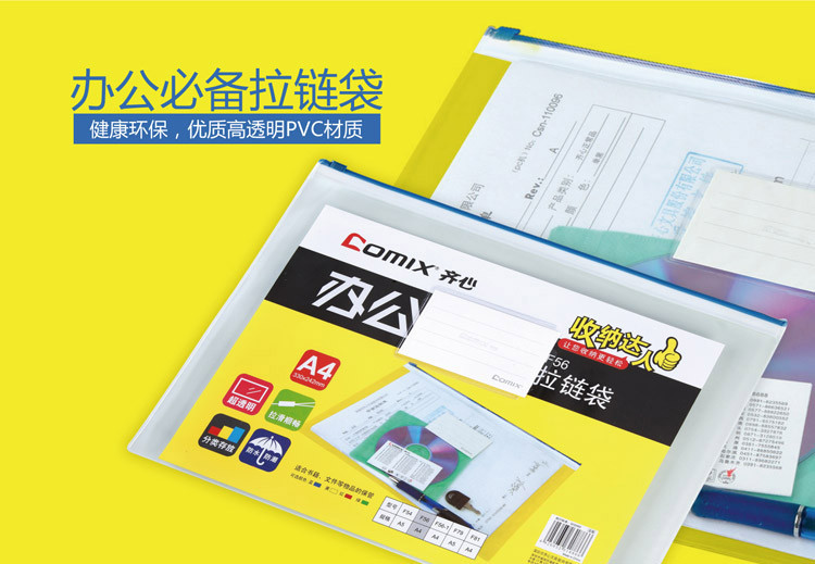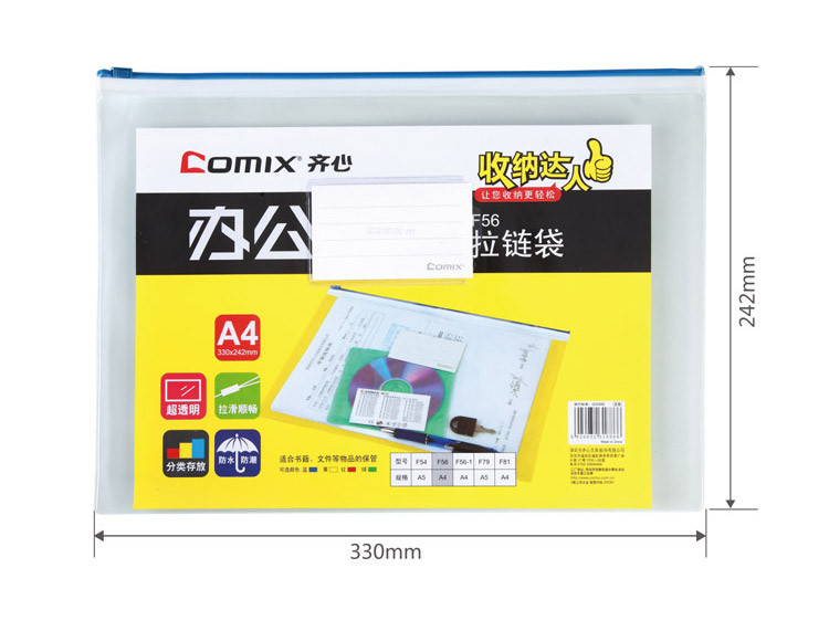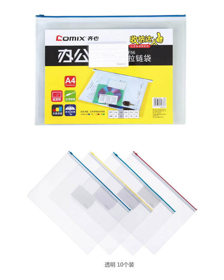 齐心(COMIX)F56 PVC拉链袋 A4 透明 10个/... ¥2.30/个