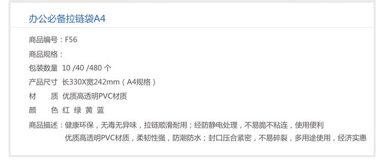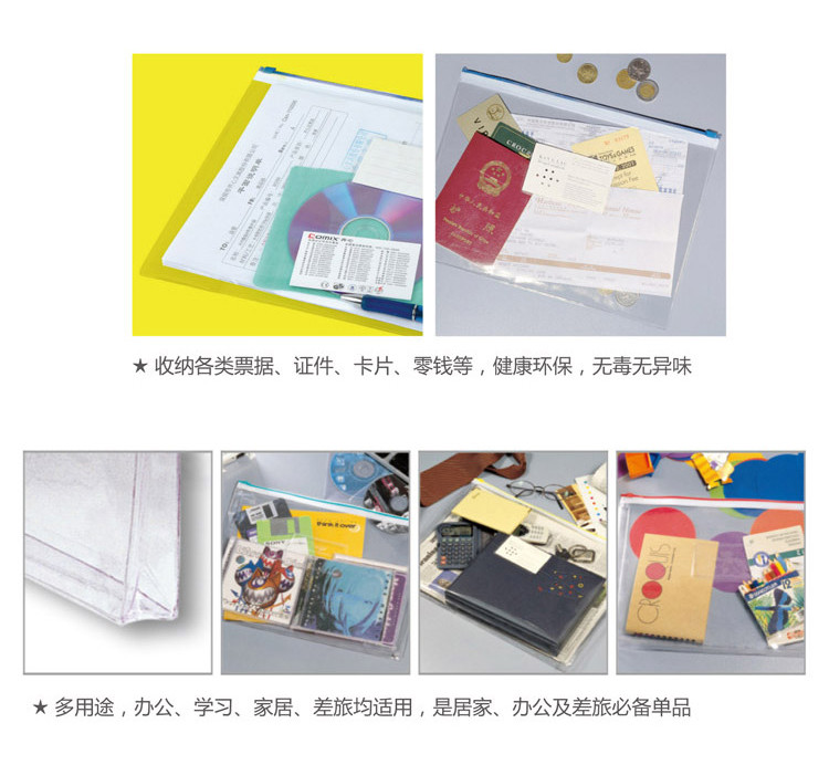 吉利发 18C透明拉边袋 A4多色 24个/包 ¥1.50/个