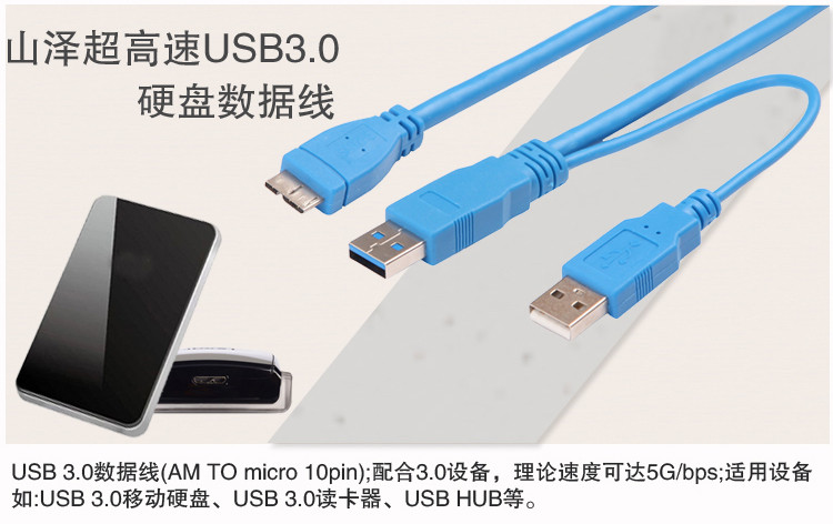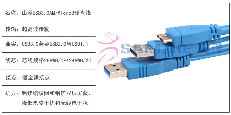 主体 品牌 山泽 种类 数据线 名称 山泽(SAMZHE)UY-008 超高速USB3.0 硬盘数据线 2A/MICRO 1M 规格 线长 1.0m