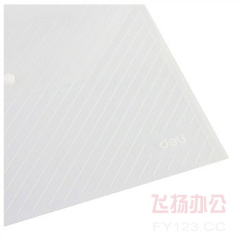 得力(Deli)5501-透明丝印按扣公文袋A4(白)采用100%进口环保PP材料制作,外板光亮透明+白色斜线丝印图案,按扣开合功能,适用于文件分类管理,资料取放方便耐用。