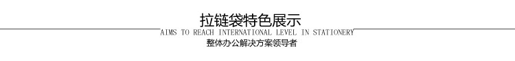 内部结构Internal Structure得力拉链袋与市场上同类杂牌的优劣竞比分析品牌介绍Brand Introduction关于得力得力致力于为全球消费者提供性价比最优的产品,使办公学习成为乐趣。得力文具借助强大的研发与制造能力,形成了基本覆盖日常办公和学习所需的产品群,率先完成综合文具供应商角色定位。得力让办公变得更高效,是你值得信赖的助手,你的成功就是“得力”的价值所在。得力文具,就在你身边,让世界上每个办公室都拥有 “得力”。