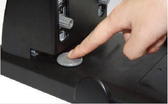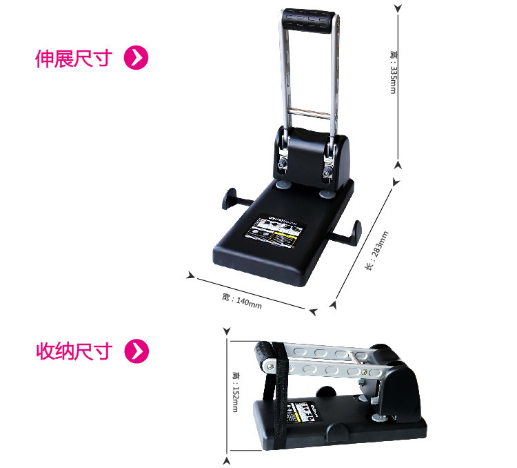 1.正面标尺可以拉开,将纸张平放于底座上,置入冲头底下。