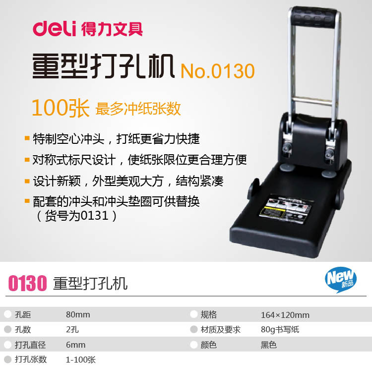 商品名称:得力0130 商品编号:030496 品牌:得力(deli) 上架时间:2012-01-06 13:12:45 商品毛重:2.26kg 商品产地:中国大陆 类型:打孔机