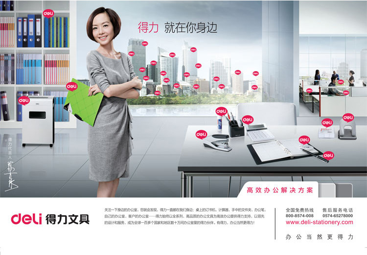 品牌介绍Brand Introduction得力致力于为全球消费者提供性价比最优的产品,使办公学习成为乐趣。得力文具借助强大的研发与制造能力,形成了基本覆盖日常办公和学习所需的产品群,率先完成综合文具供应商角色定位。得力让办公变得更高效,是你值得信赖的助手,你的成功就是“得力”的价值所在。得力文具,就在你身边,让世界上每个办公室都拥有 “得力”。