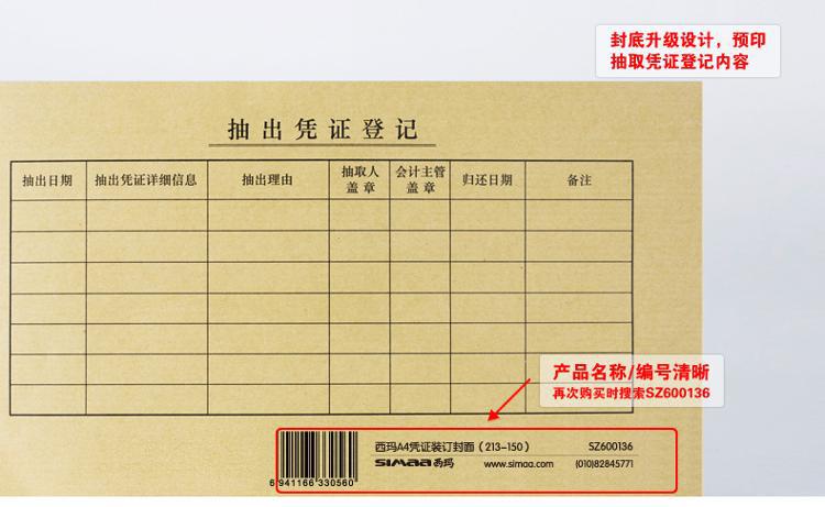 主体 品牌 西玛 类型 财务装订用品 型号 SZ600136 产品规格 规格 213*130mm 包装 25套/包 特征 其它特征 与西玛/用友KPJ101版凭证配套使用