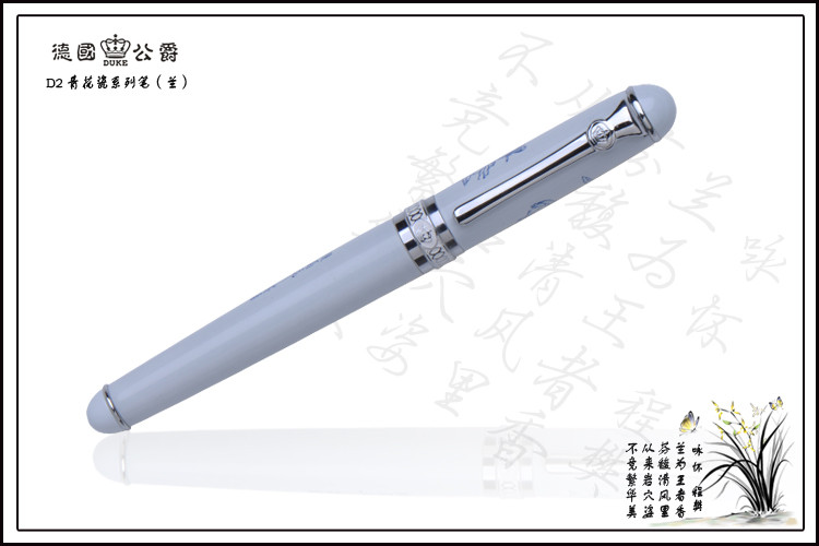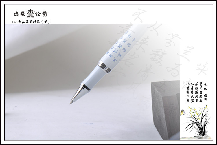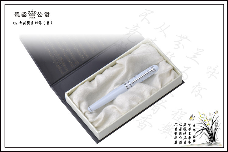 商品名称:公爵d2 商品编号:031575 品牌:公爵(duke) 上架时间:2013-04-19 11:38:49 商品毛重:234.00g 商品产地:中国大陆 类别:签字笔,中性笔 数量:单支装 `产品信息Product Information德国(DUKE)公爵—青花瓷系列宝珠笔(兰)兰生幽谷无人识,客种东轩遗我香,此句一出,似乎在那清韵的笔中有着淡淡的兰花香味产品展示Products Exhibition笔帽倒映如影,清晰可见,依偎在身旁的是它终身的相伴者,德国(DUKE)公爵青花瓷系列宝珠笔产品包装packing detail内部结构Internal Structure
