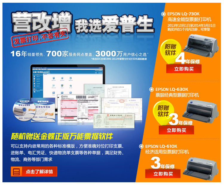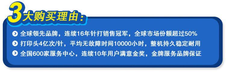 全能表现,全新高度—持续领先的全能产品,以稳定的表现成为用户首选!如今更进一步!综合性能全面提升—打印速度极速提升,色带长度达到14米,打印头寿命更长久,过热保护时间也更长!辅以一如既往的品质与服务,轻松胜任政府、企业财务、窗口行业(电信,石油,石化)、医院、酒店等行业海量打印之重托!