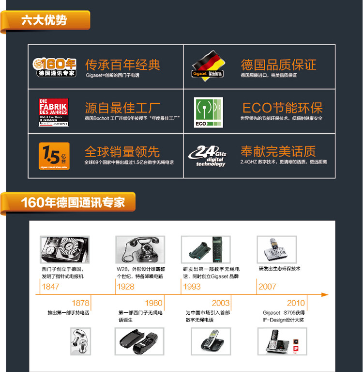 集怡嘉(Gigaset) C810A 2.4GHz数字无绳电... ¥895.00/台
