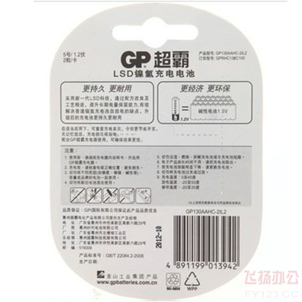 商品名称:超霸GP130AAHC 商品编号:100283 品牌:超霸(GP) 上架时间:2014-03-05 09:30:27 商品毛重:56.00g 商品产地:中国大陆 类型:5号电池