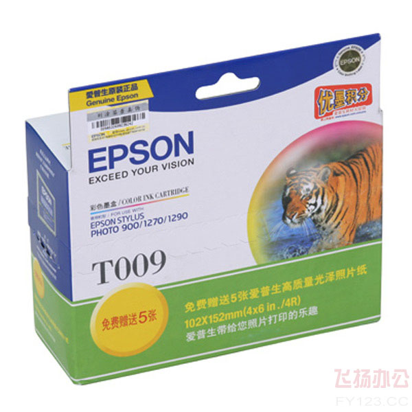 商品名称:爱普生T009 商品编号:020826 品牌:爱普生 上架时间:2013-11-15 11:16:58 商品毛重:160.00g 商品产地:中国大陆 类型:彩色