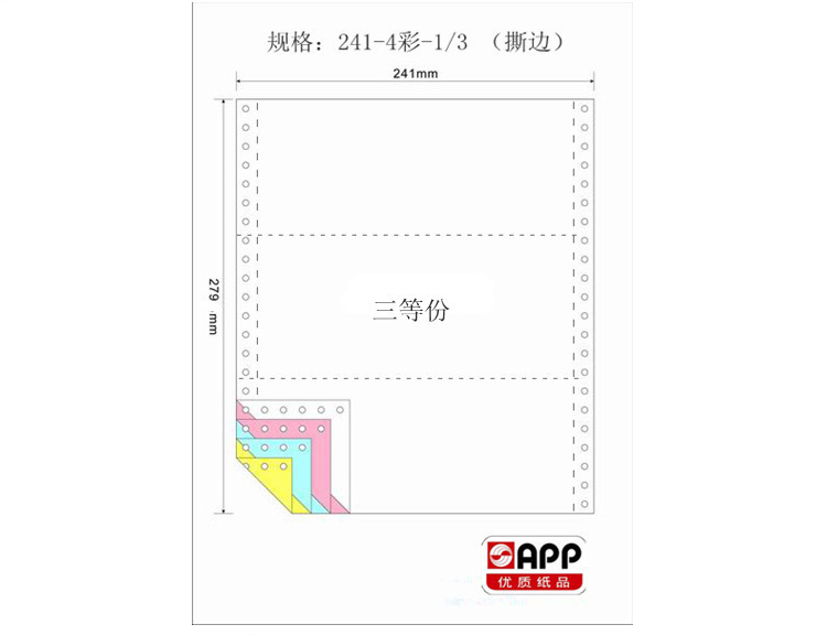 商品名称:APP金球241-4-1/3 商品编号:010103 品牌:金球(Gold Ball) 上架时间:2012-01-06 15:30:22 商品毛重:3.3kg 商品产地:中国大陆 规格:其它 类型:电脑打印纸