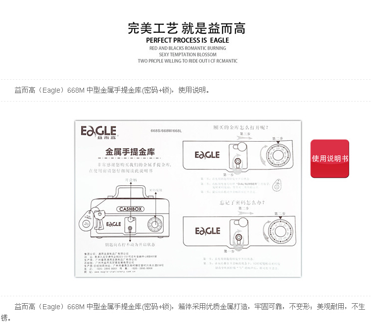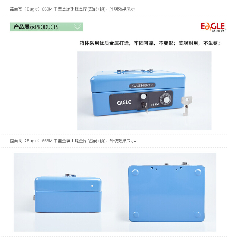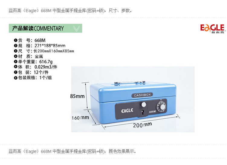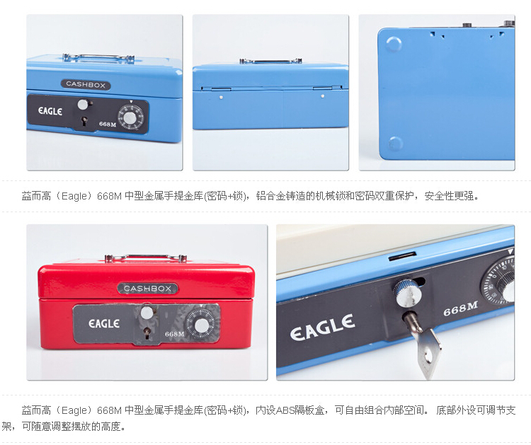 益而高(Eagle)668S 小型金属手提金库(密码+锁) ¥58.00/个