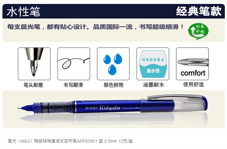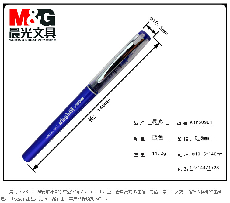 商品名称:晨光ARP50901 商品编号:033075 品牌: 晨光(M&G) 上架时间:2014-05-23 16:57:26 商品毛重:150.00g 商品产地:中国大陆 类别:中性笔/签字笔