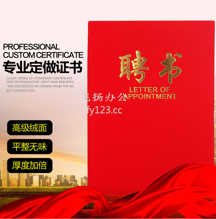 定制荣誉证书 定制证书 定做聘书12K 16k 8k 6K绒面聘书