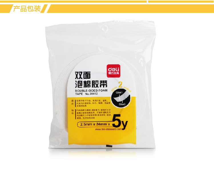 得力(deli)30412 EVA泡棉双面胶带 强力高粘 2... ¥24.00/袋