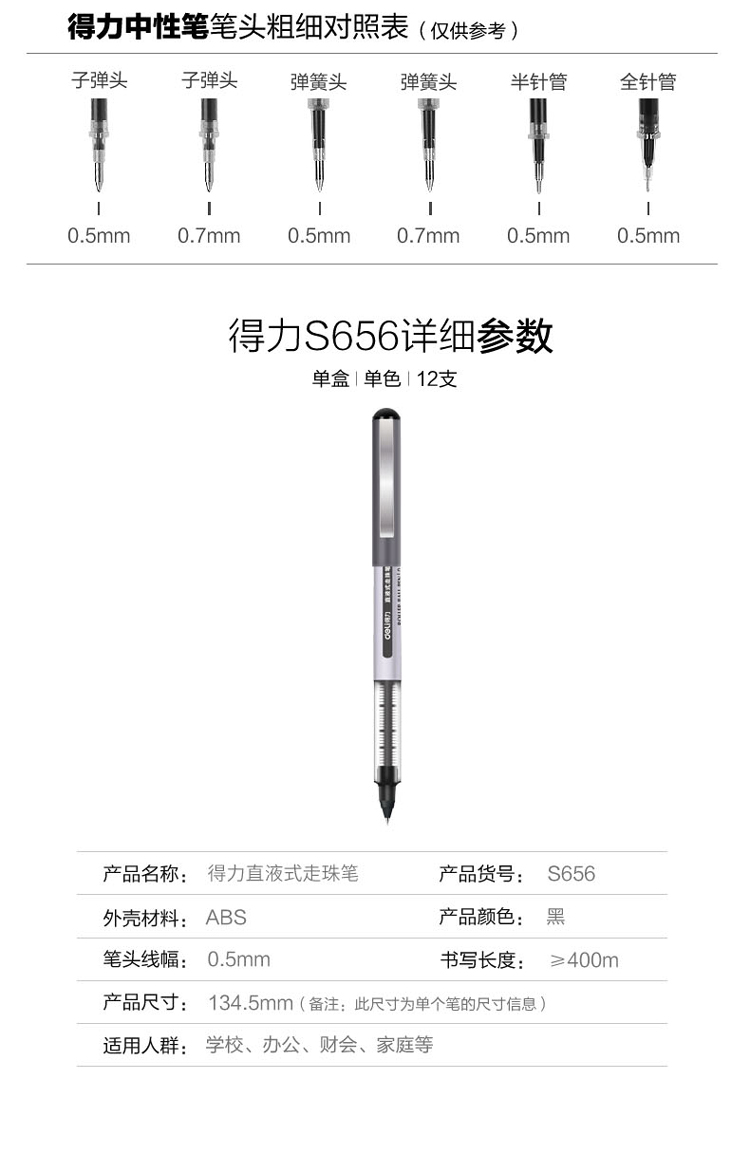 商品名称:得力S656 商品编号:170694 商品毛重:130.00g 商品产地:中国大陆 类别:其它 数量:2--12支