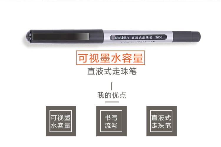 商品名称:得力S656 商品编号:170695 商品毛重:140.00g 商品产地:中国大陆 货号:S656 数量:2--12支