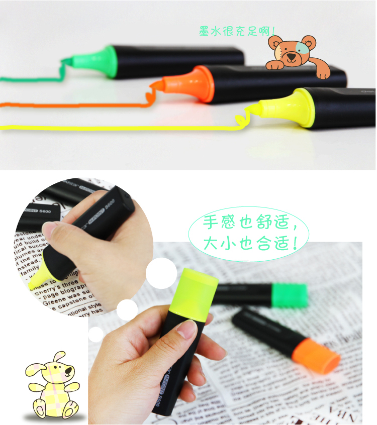 施德楼364荧光笔 斜头多角度标记笔 黄色 10支/盒 ¥4.50/支