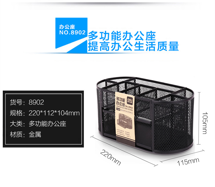 商品名称:得力8902 商品编号:170834 商品毛重:0.55kg 商品产地:中国大陆 货号:8902 类型:笔筒/收纳,办公生活