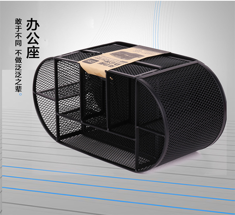 得力(DELI)9175 金属网纹多功能办公笔筒 黑色 ¥15.00/个