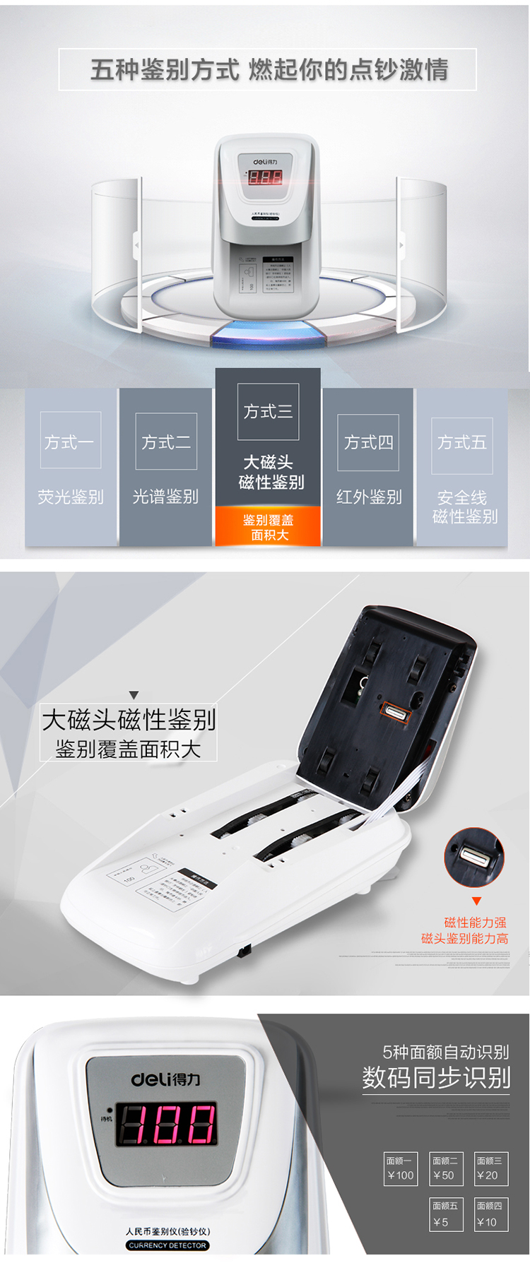 得力3919S验钞机 银行专用点钞机 真人语音/USB升级/... ¥1299.00/台