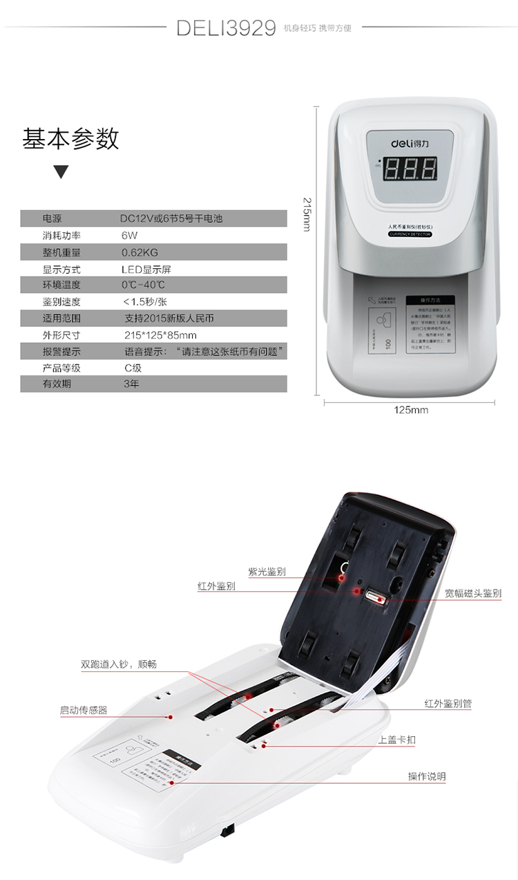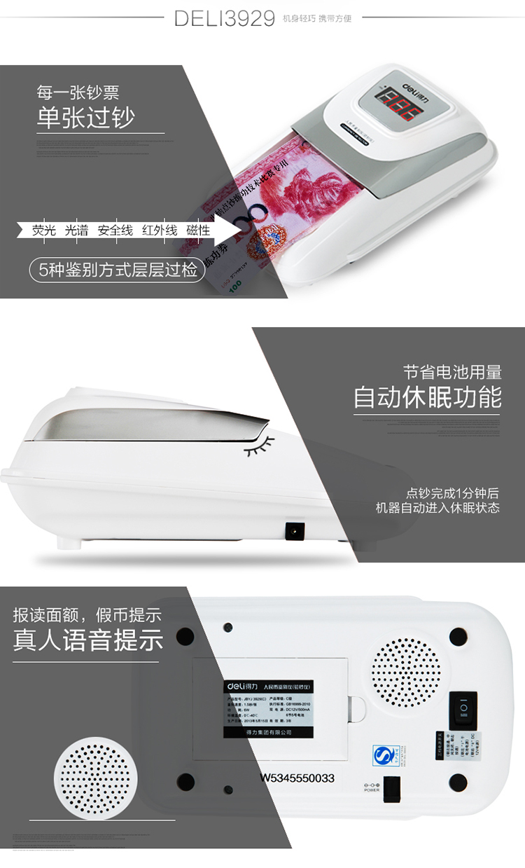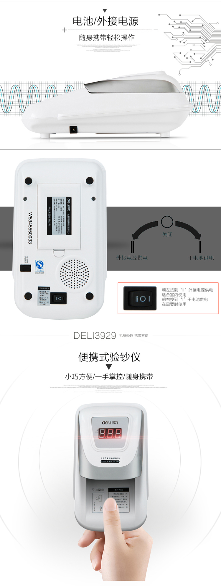得力(deli)3929 便携式小型验钞机 双电源精准验钞仪... ¥199.00/台