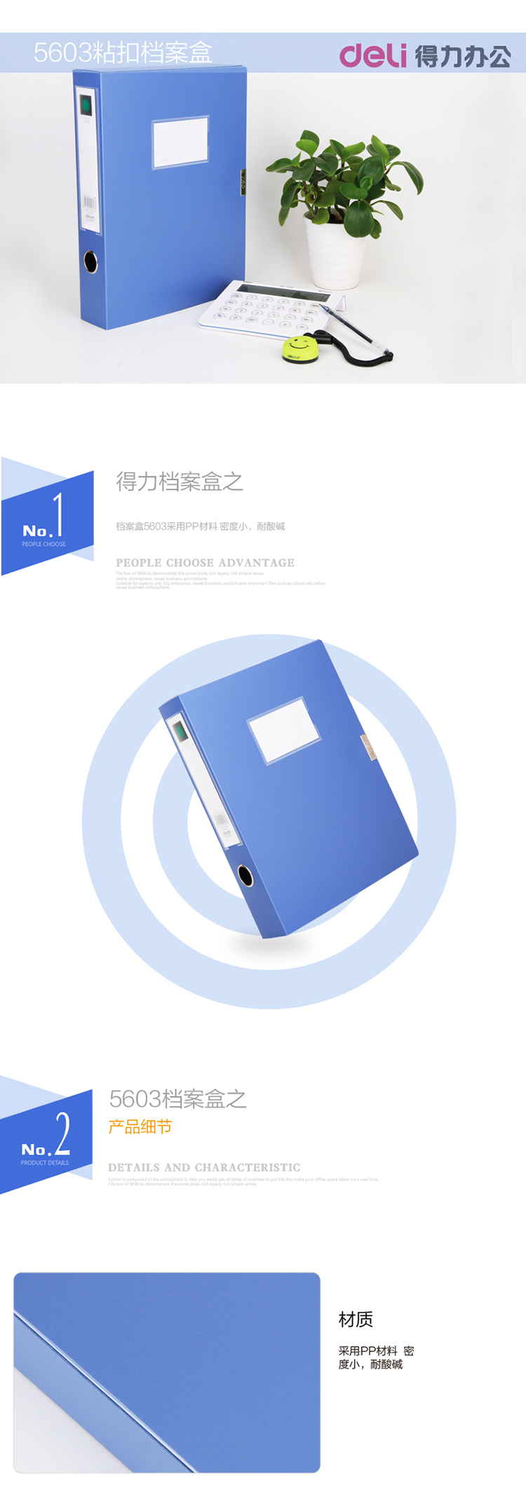 得力(DELI)5622 大容量PP材质高级档案盒A4(蓝)... ¥7.80/个
