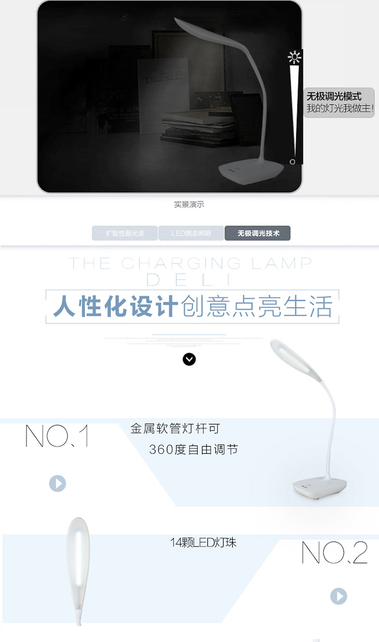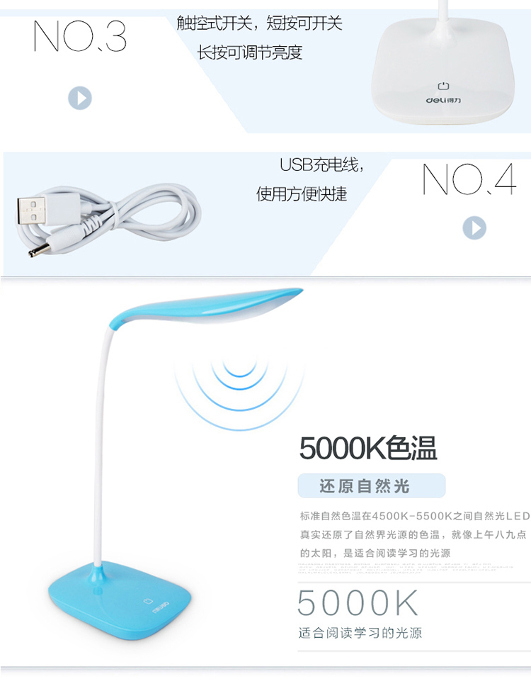 得力(deli)3679 时尚LED夹式折叠 可充电台灯 灯... ¥48.00/个