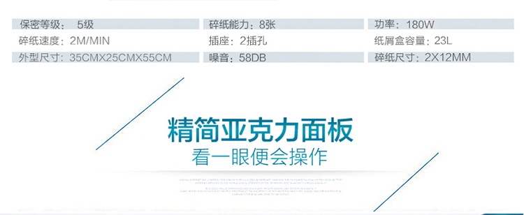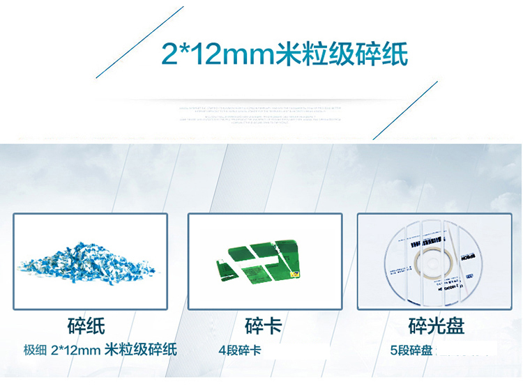 商品名称:得力9953 商品编号:171132 商品毛重:9.94kg 商品产地:中国大陆 保密等级:5级保密 碎纸对象:纸张,光盘,银行卡 可碎介质:纸 连续碎纸:10分钟以下 碎纸张数:6张以下 纸箱容量:10升以下