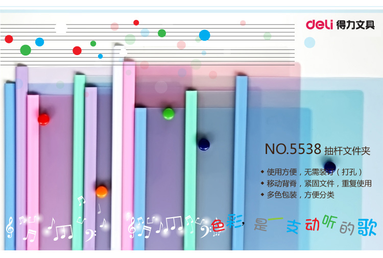 得力(deli) 5538 A4彩色抽杆文件夹报告夹 颜色随... ¥15.00/包
