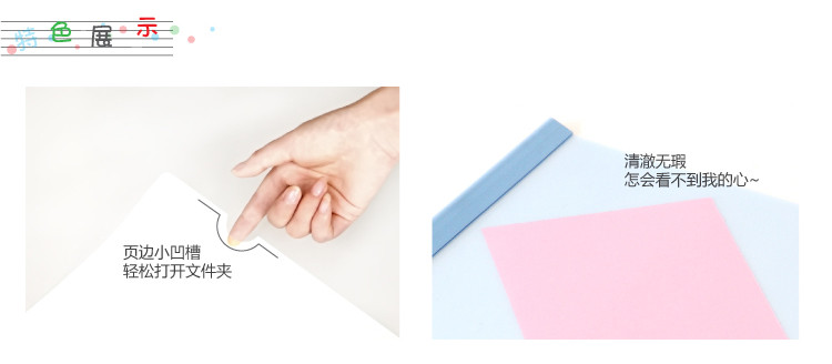 商品名称:得力5538 商品编号:171189 商品毛重:320.00g 商品产地:中国大陆 类型:文件夹 产品信息 Product Information各个角度如实展现尺寸信息 Size Information取代繁琐,使用快捷方便你想到的,都为你收藏产品细节 Product Details贴心小凹槽设计,方便打开文件夹,透明PP材质,内里文件清晰明了,轻松查找