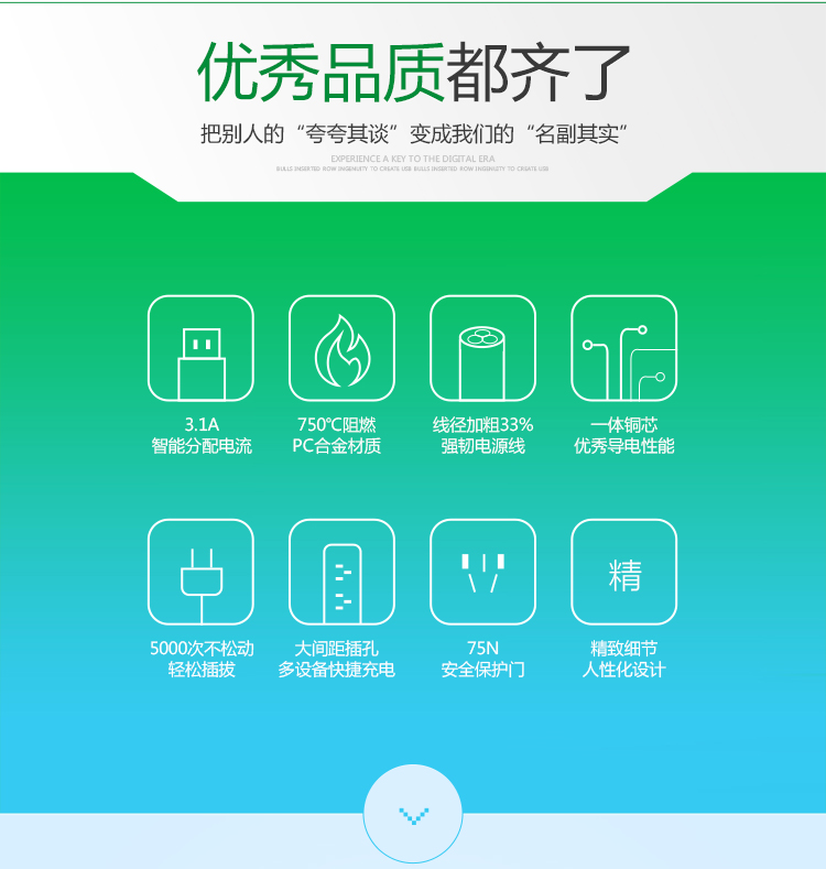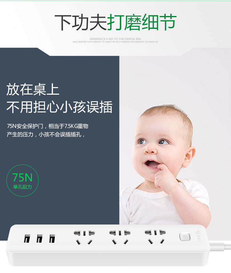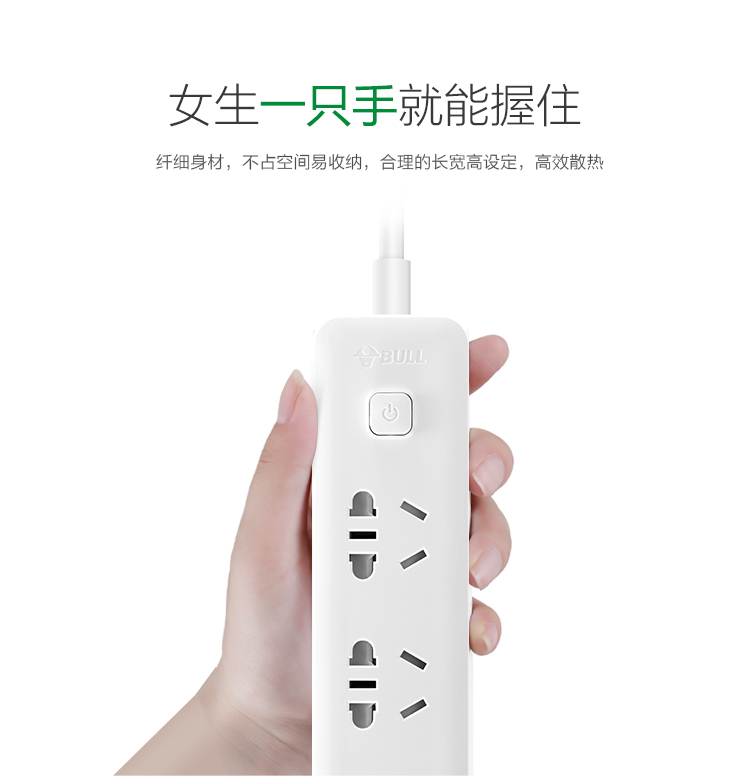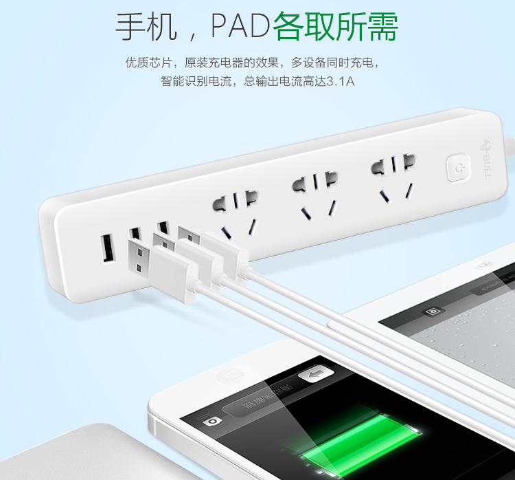 品牌: 公牛(BULL) ♥关注 --> 商品名称:公牛GN-B403U 商品编号:171306 商品毛重:435.00g 商品产地:中国大陆 孔位:三位及以下 开关:总控开关 适用标准:国内标准 全长:2米以下 功能:USB充电 更多参数>> 产品展示 Products Exhibition