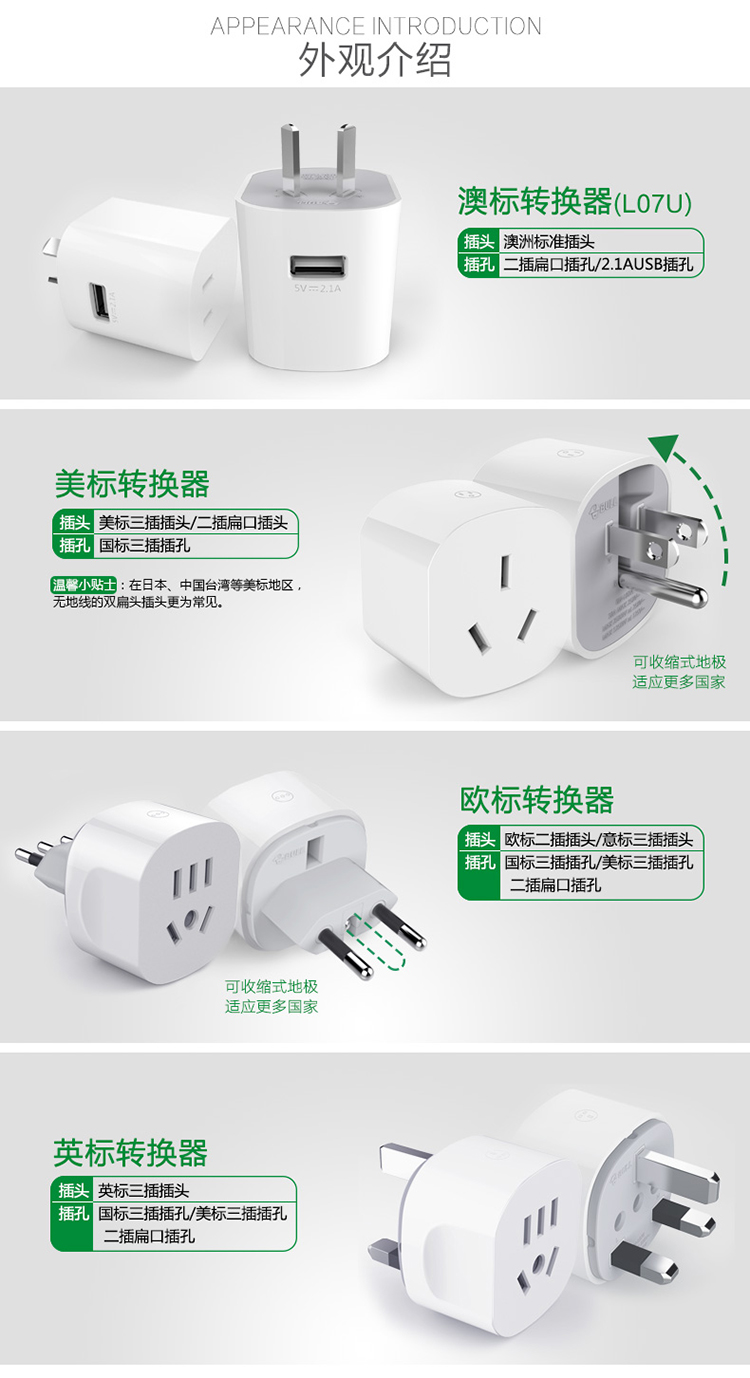 公牛(BULL)GN-L07U 新国标带USB多国旅行转换器... ¥79.00/个